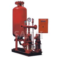 我公司生产的X系列消防气压给水设备是以GBJ50015-2003《建筑给水排水设计规范》、GBJ16-87《建筑设计防火规范》、GB50045-95《高层民用建筑设计防火规范》、GB50084-2001《自动喷水灭火系统设计规范》为设计依据;以GA13.1 -2002《固定消防给水设备的性能要求和试验方法、第1部分:消防气压给水设备》为标准生产的新型固定灭火装置。该装置由气压灌、稳压泵、消防主泵、电控柜及仪表、阀门、管路、基座等组成,适用于一切需要增高压力的消防给水系统。